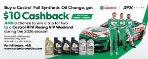 $10 Cashback on a Castrol Full Synthetic Oil Change